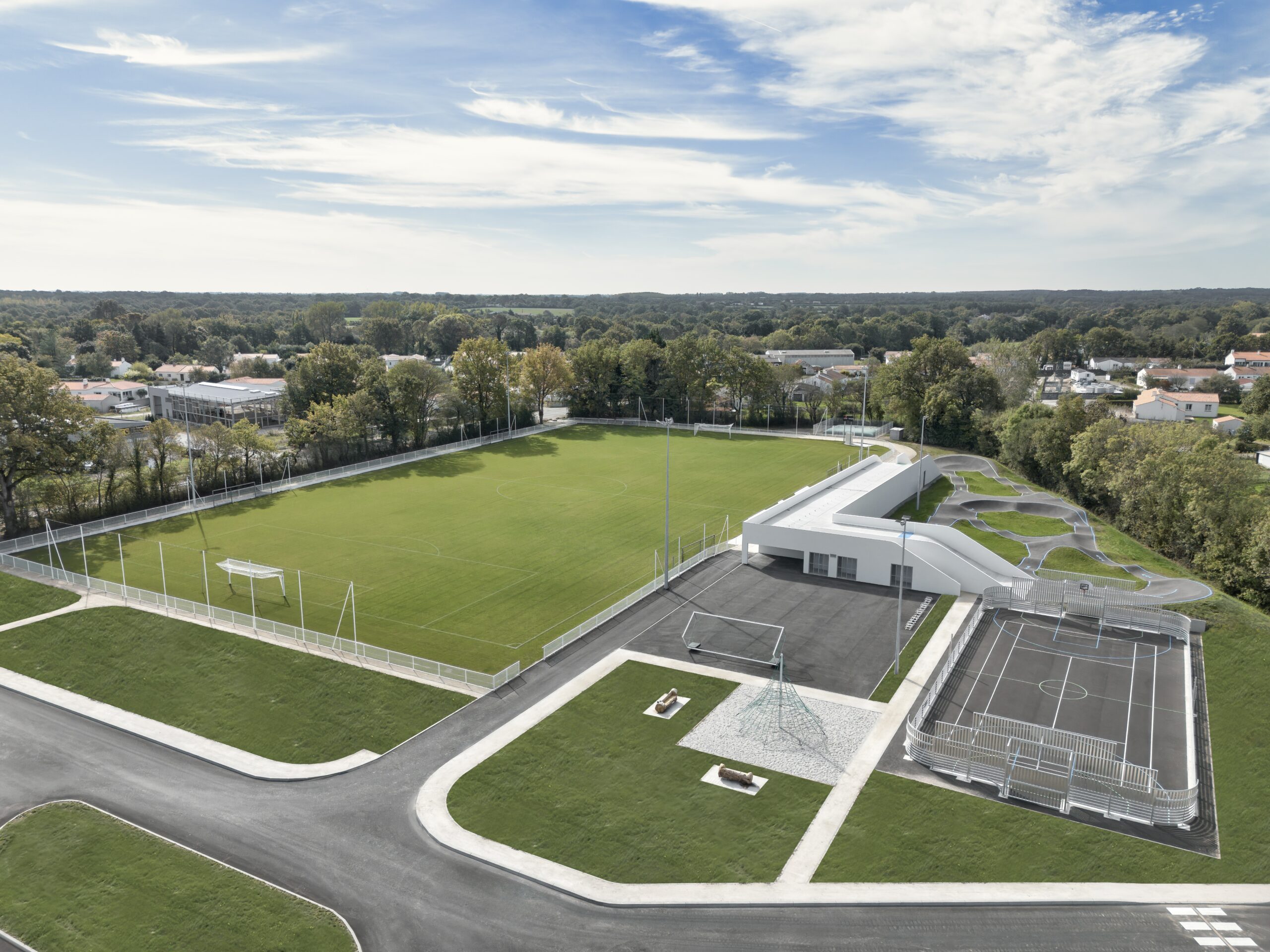 Le projet transforme un terrain existant en un pôle sportif et récréatif ouvert à tous. Il intègre la création d’un parking bus pour les compétitions, d’un City stade en accès libre, d’une aire de jeux pour enfants ainsi que de nouveaux vestiaires et d’un club house au service du football local.
