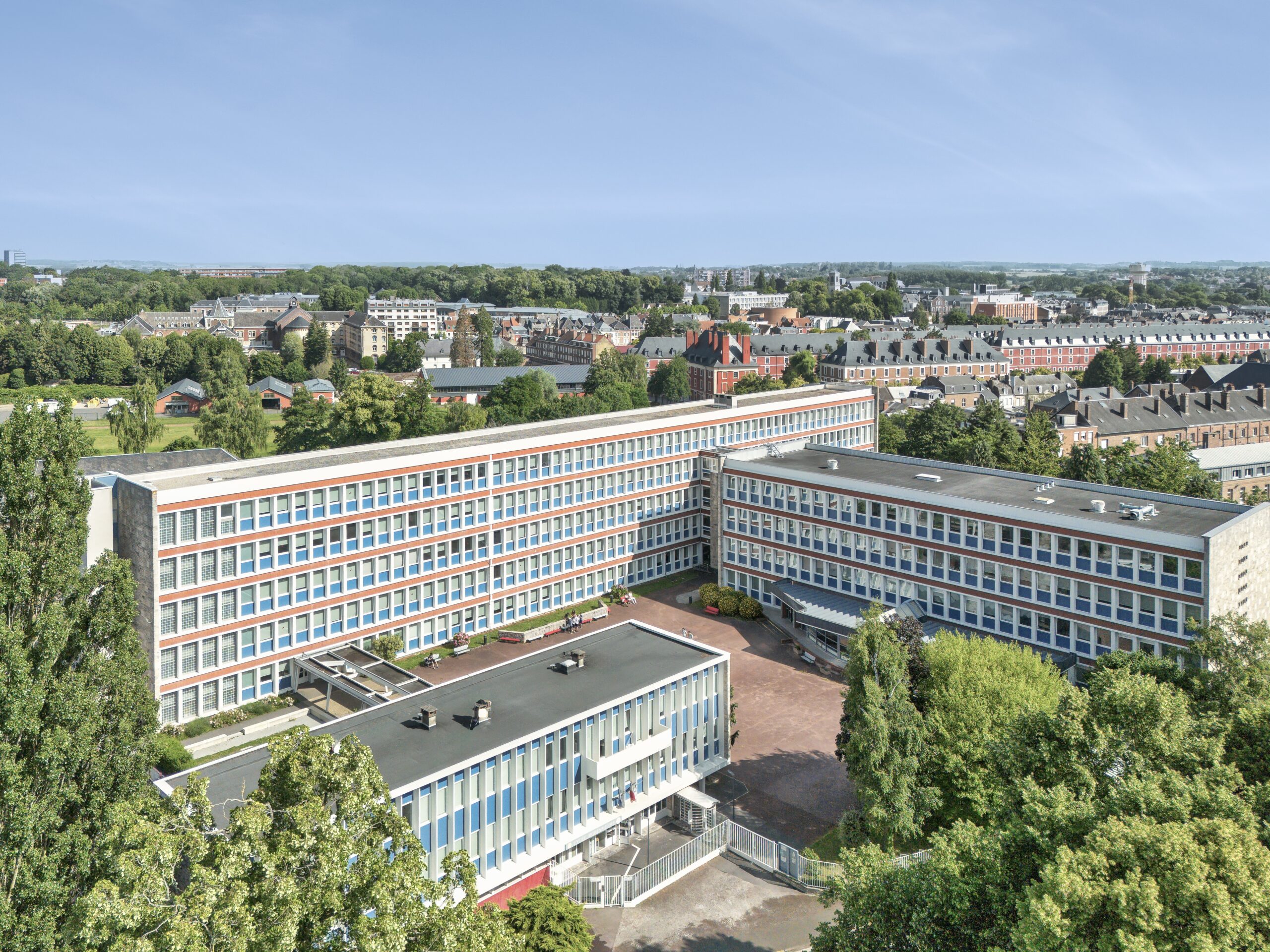 Au cœur du centre-ville d’Arras, le lycée Robespierre fait l’objet d’une intervention d’envergure sur ses façades. Mené en site occupé, le chantier a consisté à remplacer plus de 1 000 châssis bois d’origine, tout en intégrant les enjeux contemporains de confort thermique, de sécurité et de conservation du patrimoine bâti.