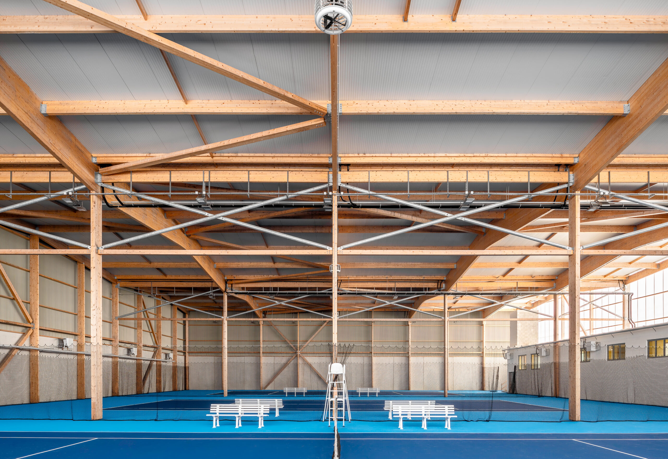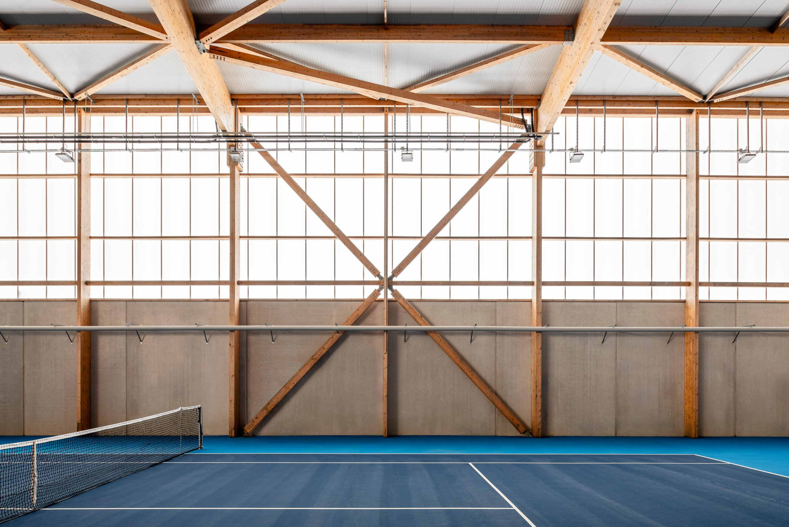 Au cœur du parc des sports de Lagny-sur-Marne, le complexe sportif Mathilde Johannson incarne une nouvelle génération d’équipements dédiés au tennis et aux sports de raquette. Conçu comme un lieu de pratique et de convivialité , le projet regroupe trois terrains intérieurs, deux terrains extérieurs, deux courts de padel, un club house et un cabinet de kiné.