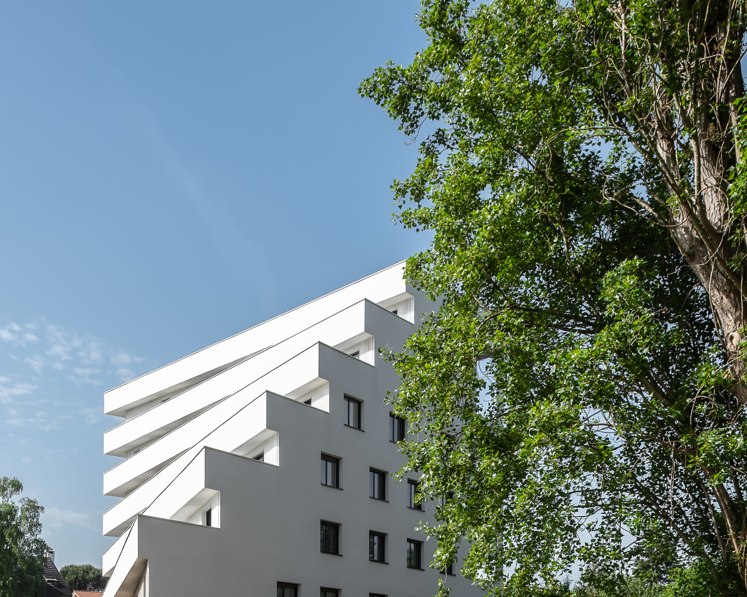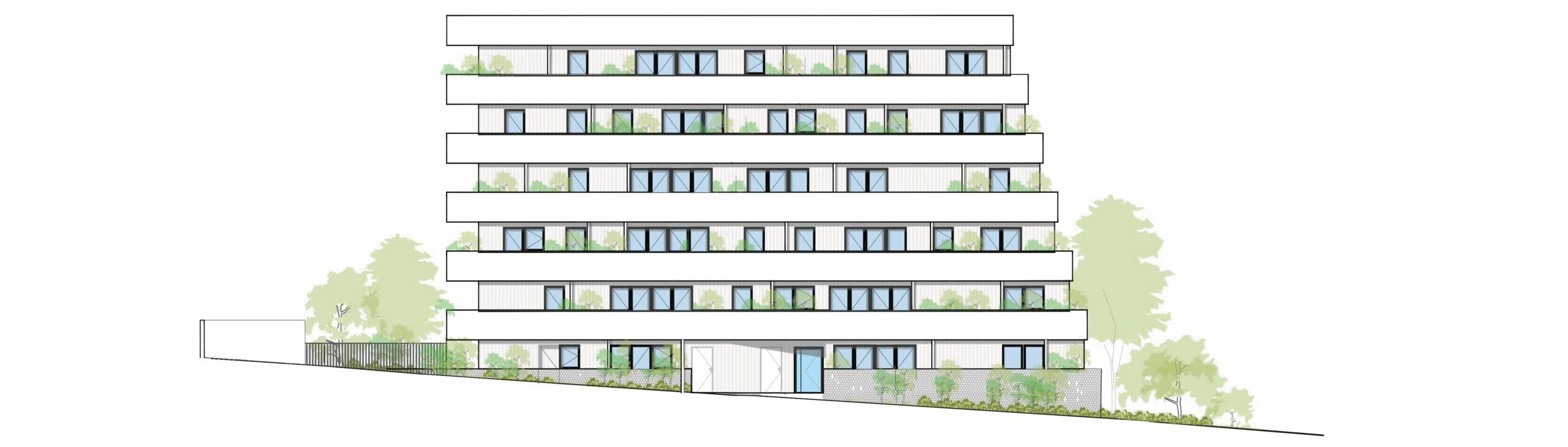 Par sa forme et son ouverture sur la coulée verte, le projet illustre la volonté d’associer qualité de vie dans les logements, générosité des espaces extérieurs et ancrage urbain, dans une logique de dialogue entre grand paysage et bâti.